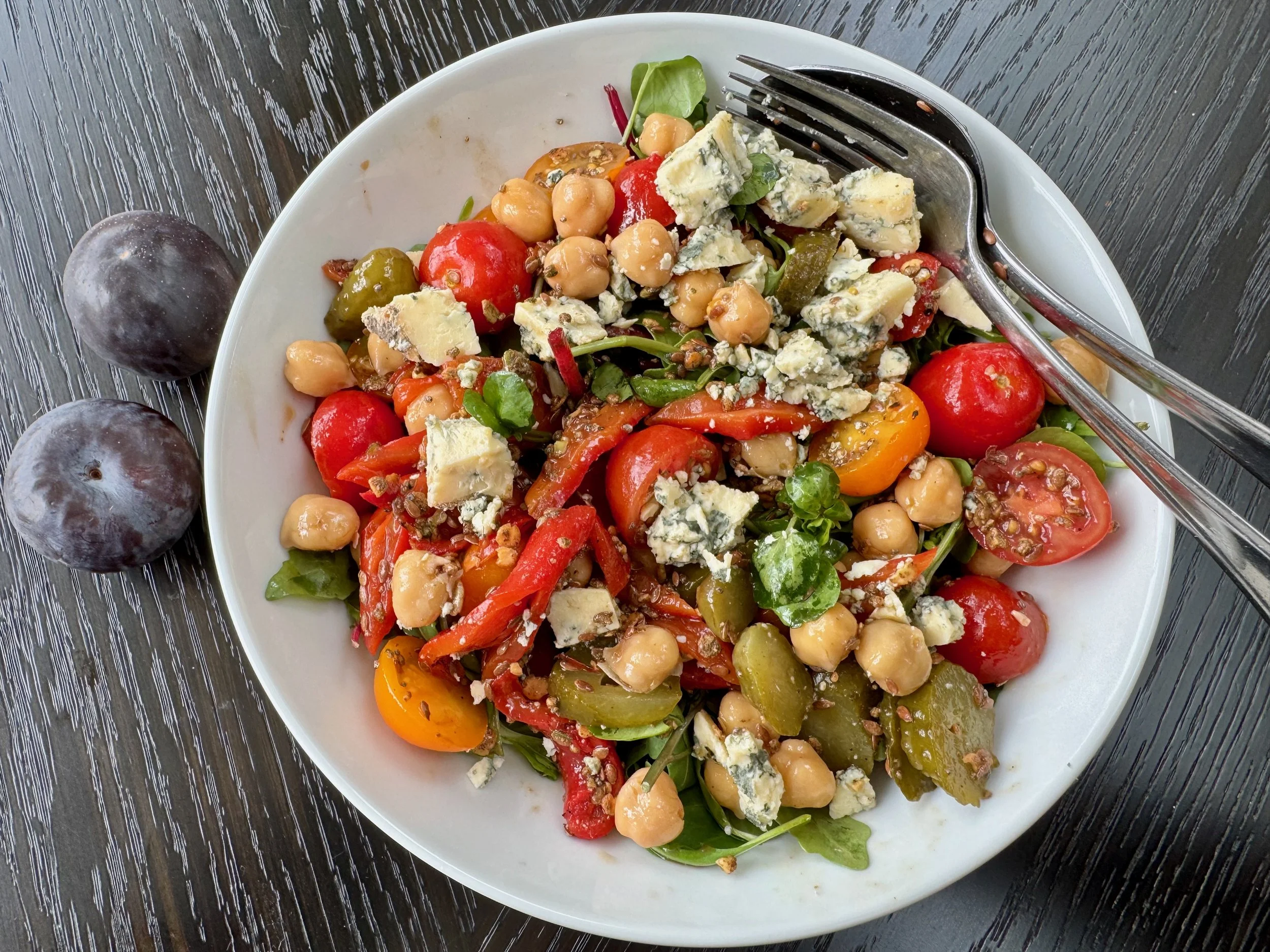 Today’s lunch. With blue cheese. Forgot the olives! No bread.